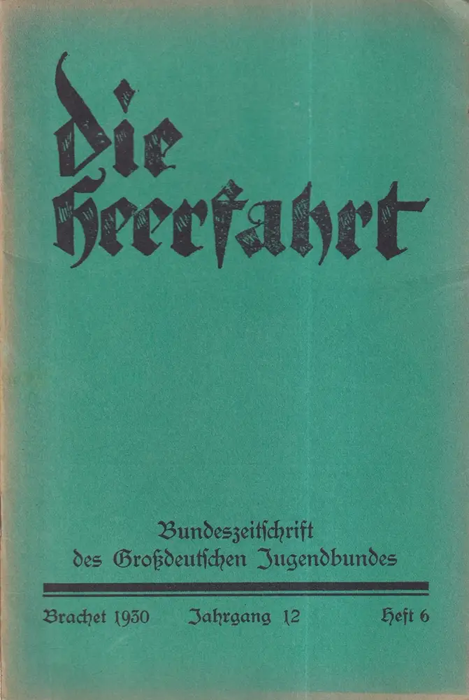 Titel: Die Heerfahrt. JG. 12, HEFT 6. Bundeszeitschrift des Großdeutschen Jugendbundes. . (Red.: Helmut Düspohl, Willi Koelle)