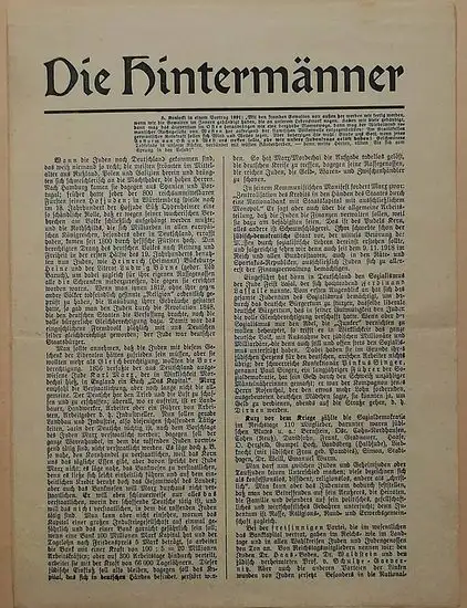 Seltenes antisemitisches Flugblatt des Reichshammerbundes, einer völkischen Vereinigung, die 1912 in Leipzig von dem Verleger und Autor Theodor Fritsch gegründet wurde.