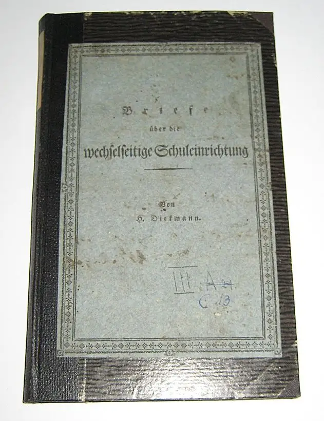 Diekmann, H: Briefe darstellend die wechselseitige Schuleinrichtung nach ihrem Bestehen in der Normalschule zu Eckernförde, [...]. [...] nach ihrem Wesen und Werthe und nach ihrer Gestaltung für unsere Volksschulen den Umständen gemäß. Von H. Diekmann, Sc
