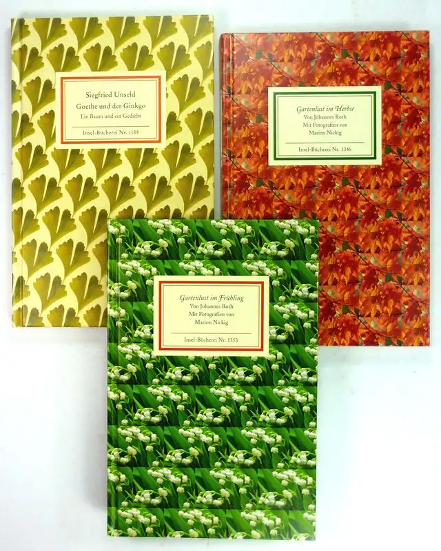 (Div. Autoren): Unseld, Siegfried: Goethe und der Ginkgo. Ein Baum und ein Gedicht. Insel-Bücherei Nr.1188. 105 S., mit Abb. / Roth: Gartenlust im Herbst. Mit Fotografien von Marion Nickig. Insel-Bücherei Nr. 1346. 101 S. / Roth: Gartenlust im Frühling.