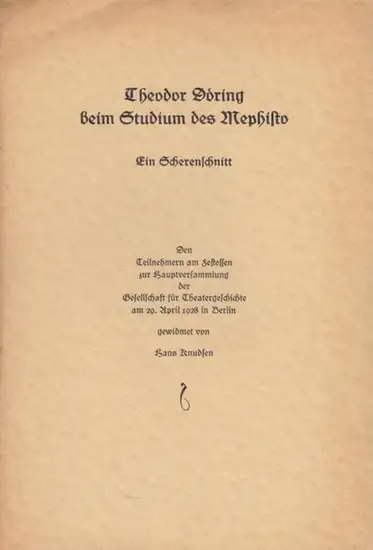 Doering, Theodor. - Hans Knudsen: Theodor Döring beim Studium des Mephisto. Ein Scherenschnitt. Den Teilnehmern am Festessen zur Hauptversammlung der Gesellschaft für Theatergeschichte am 29. April 1928 in Berlin gewidmet von Hans Knudsen.