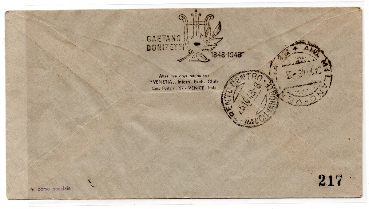 Umschlag - Donizzetti Nr. 593 Paar auf Umschlag (Format 17,5 x 9,3) gereist Racc. nach Mailand mit Ann. Ankunft - Ungewöhnlich Cod. 438/17