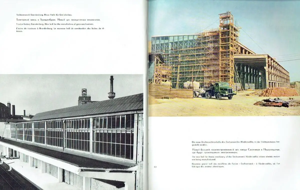 guter Zustand, Gebrauchs- und Alterungsspuren: Einband etwas verzogen / gewölbt sowie teils leicht verschmutzt - Titel mit kleinem Namensstempel - hinten im Deckel alter Besitzeradressaufkleber - Seiten sauber und ordentlich - ohne Schutzumschlag, Alle Fotos in diesem Bildband stellen die wichtigsten Bauvorhaben der volkseigenen Wirtschaft der Deutschen Demokratischen Republik dar. "Die Deutsche Demokratische Republik hat seit ihrem Bestehen ungewöhnlich hohe Investitionen für die Erweiterung ihrer Industrie aufgewandt. Sie war dazu gezwungen, weil sie als Kriegsfolge außerordentliche Disproportionen ihrer industriellen Kapazitäten übernommen hatte. Die Spaltung Deutschlands durch die Westmächte und die westdeutsche Reaktion im Jahre 1948 riß die gesamtdeutsche Wirtschaft auseinander. Das warf für die auf dem Gebiet der heutigen DDR liegende Wirtschaft schwerwiegende Probleme auf, weil fast die ganze Rohstoffgrundlage und die schwerindustrielle Basis der deutschen Wirtschaft in Westdeutschland liegt, während sich im östlichen Deutschland die Schwerpunkte der Fertigwarenindustrie befinden. Die Wirtschaftspolitik der DDR stand deshalb von Anfang an vor der zwingenden Notwendigkeit, sehr starke Investitionen auf die Schwerindustrie zu konzentrieren, um die Grundlage für die umfangreiche Fertigwarenindustrie zu schaffen. Der vorliegende Bildband, der einen Überblick über einige Investitionsvorhaben der DDR geben soll, spiegelt deutlich wider, wie stark die Investitionsvorhaben der Grundstoffindustrie, des Bergbaus, der Energiewirtschaft, des Hüttenwesens und der Schwerchemie im Vordergrund der industriellen Bauvorhaben standen und stehen. Die Bauten der Industrie stehen vollkommen im Zeichen der Fortsetzung dieser auf die Schwerindustrie gerichteten Investitionspolitik. Allmählich werden die durch die Spaltung Deutschlands hervorgerufenen Disproportionen überwunden. Die wichtigsten Industriebauvorhaben liegen auf dem Gebiet der chemischen Industrie, der Energiewirtschaft, der Metallurgie, der Elektrotechnik und der für den technischen Fortschritt und der Steigerung der Arbeitsproduktivität in der gesamten Volkswirtschaft wichtigen Produktionszweiges des Maschinenbaus. An der Spitze der Großbauten steht das Erdölverarbeitungswerk Schwedt, stehen die beiden Großkraftwerke Lübbenau und Vetschau mit zusammen 2300 Megawatt Leistung. Das Riesenprojekt des Braunkohlenkombinats Schwarze Pumpe wird der Vollendung zugeführt. In Schwedt wird eine Kapazität erreicht, die den größten bekannten Vorhaben entsprechender Werke in Westdeutschland gleichkommt. lm Süden der Wilhelm-Pieck-Stadt Guben entsteht auf einem Gebiet von 150 Hektar das neue Chemiefaserkombinat, das nach seiner Fertigstellung zu den größten Chemiefaserkombinaten Europas gehören wird. Die beiden Chemiegiganten Leuna und Buna werden Investitionen im Werte von 3 Milliarden DM erhalten. In Leuna entsteht ein zweites Chemiewerk, Leuna II, und Buna erhält die größte Karbidfabrik der Welt. Die Fertigstellung des Überseehafens Rostock ist das größte Vorhaben des DDR-Verkehrs und hat für die Außenhandelsbeziehungen der DDR überragende Bedeutung. Alle diese Vorhaben werden in dem Bildband dargestellt. Daneben stellt die Entwicklung die Bauwirtschaft noch vor andere gewaltige Aufgaben, wie das Wohnungsbauprogramm zur Errichtung moderner und schöner Wohnungen in den Städten und Dörfern der DDR. Für die Entwicklung der sozialistischen Landwirtschaft und für den Städtebau werden immer größere Baukapazitäten benötigt. Um diese Aufgaben lösen zu können, ist es notwendig, die Arbeitsproduktivität im Bauwesen sprunghaft zu steigern. Mit der beschleunigten Industrialisierung im Bauwesen kann dieses Ziel erreicht werden. Diese Industrialisierung, die in allen Ländern der Welt mit verschiedenem Tempo vor sich geht, ist eine revolutionäre technische Umwälzung größten Ausmaßes, die jahrhundertealte Baumethoden, die sich in ihren Grundlagen gleichgeblieben sind, durch völlig neue ersetzt.", Leinen, ca. 22 x 27, 158 Seiten mit 121 Bildern