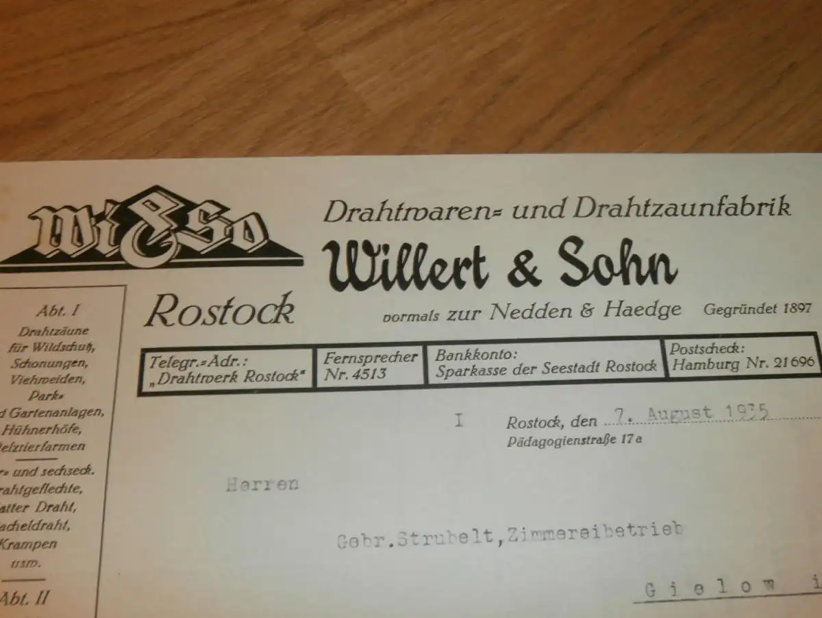 Drahtwaren- und Zaunfabrik , - Willert & Sohn in Rostock , 1935 , vorm. Nedden & Haedge , Mecklenburg , altes Dokument !AZ9-Z/1