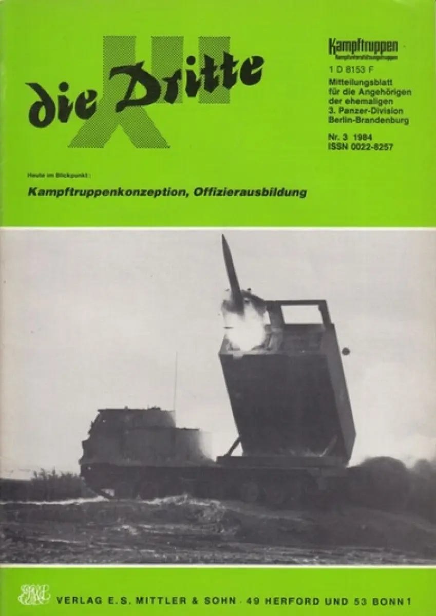 Titel: die Dritte. Jahrgang 33, 1984, Nr. 3. Mitteilungsblatt für die Angehörigen der ehemaligen 3. Panzer-Division Berlin-Brandenburg. Kampftruppenkonzeption, Offiziersausbildung