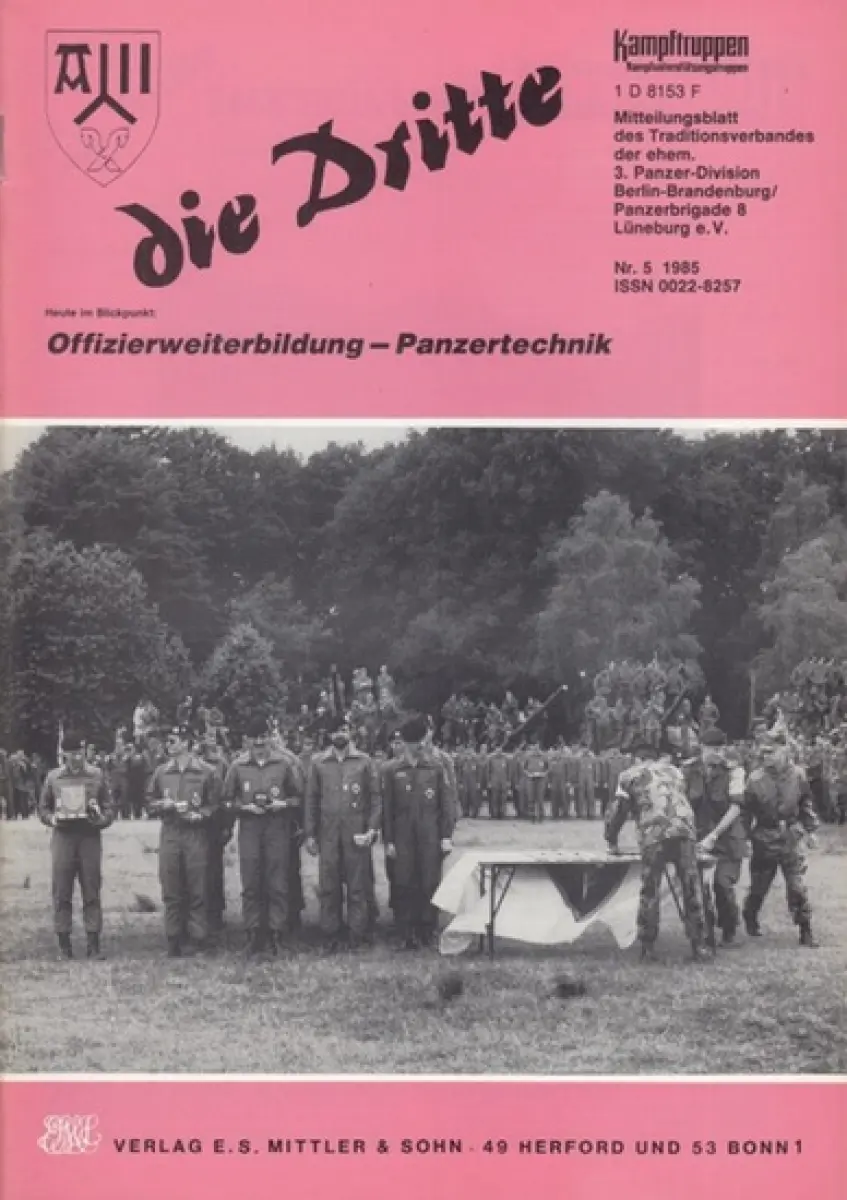 Titel: die Dritte. Jahrgang 34, 1985, Nr. 5. Mitteilungsblatt für die Angehörigen der ehemaligen 3. Panzer-Division Berlin-Brandenburg / Panzerbrigade 8 Lüneburg e.V. - Offizierweiterbildung - Panzertechnik