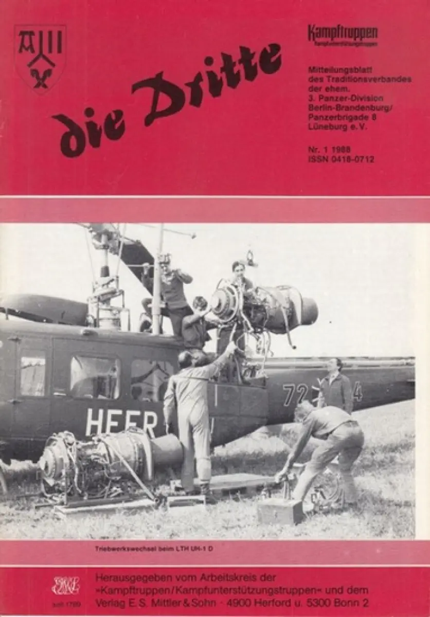 Titel: die Dritte. Jahrgang 37, 1988, Nr. 1. Mitteilungsblatt für die Angehörigen der ehemaligen 3. Panzer-Division Berlin-Brandenburg / Panzerbrigade 8 Lüneburg e.V
