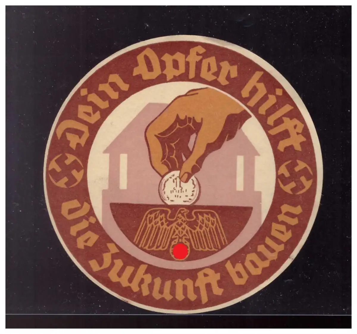 Dt- Reich (023205) Propaganda WHW Türblatt rund ca. 10 cm Dein Opfer hilft, Die Zukunft bauen