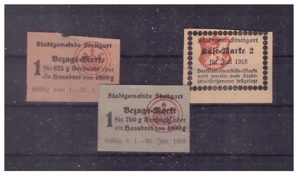 Dt- Reich (023447) 3 Lebensmittel Marken 1918 aus Stuttgart