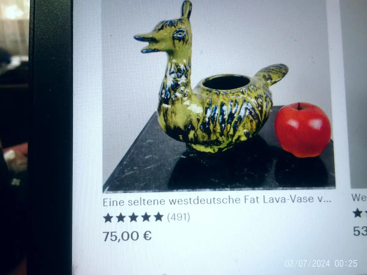 Dümler & Brieden um 1960 Figur Tier Zier Keramik Orange Grün Braun Vase Formnr.: 624-16 H: 16cm sehr gute Erhaltung!