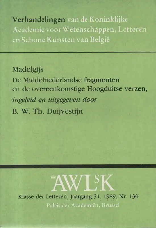 Titel: Madelgijs: de Middelnederlandse fragmenten en de overeenkomstige Hoogduitse verzen. (Verhandelingen van de Koninklijke Academie voor Wetenschappen, Letteren en Schone Kunsten van België, Klasse der Letteren ; 130