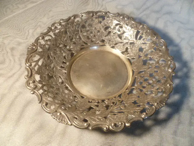 besonders fein graviert mit Blüten und Rankenwerk des Rokoko , von Hand ausgesägte durchbrochene Silberschale