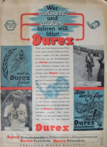 Durex Rennaben 1950 "Wer schnell und sicher fahren will" kompletter Block Zubehörprospekt (5572)