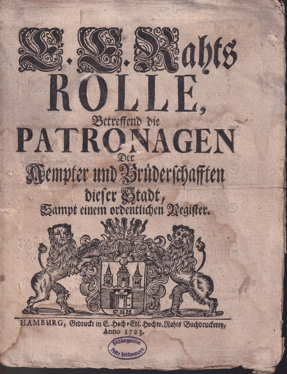 E. E. Rahts Rolle, betreffend die Patronagen der Aempter und Brüderschaften dieser Stadt, sampt einem ordentlichen Register.