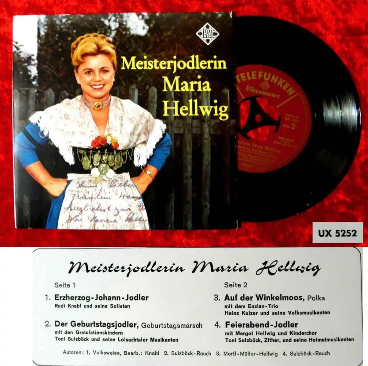 EP Maria Hellwig: Meisterjodlerin (Cover Signiert mit Widmung) Telefunken UX5252