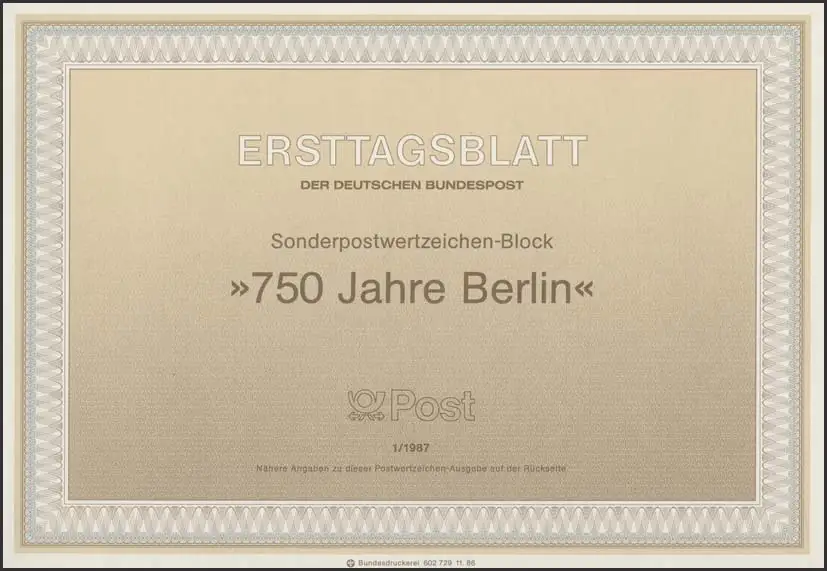 ETB 01/1987 Block, Berlin, Charlottenburg, Philharmonie