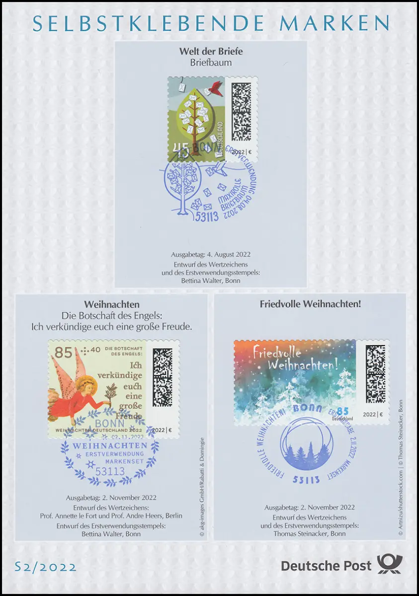 ETB S2/2022 SELBSTKLEBENDE Welt der Briefe 45 Cent, Weihnachten