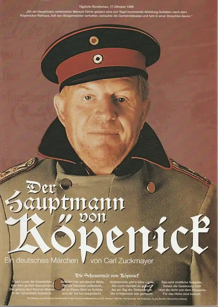 EURO-STUDIO, Konzertdirektion Landgraf, Birgit Landgraf, Guido Kasper ( Szenenfotos ): Programmheft Carl Zuckmayer DER HAUPTMANN VON KÖPENICK Premiere 21.9.1996 Stadthalle Kehl.
