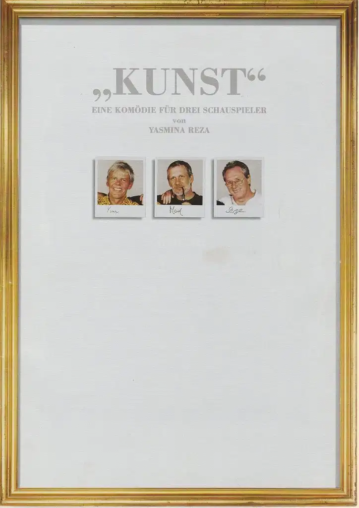 Art. Eine Komödie für drei Schauspieler. Regie und Raum: Fred Berndt. Kostüme: Dorothee Uhrmacher. Mitwirkende: Michael Altmann, Wolfgang Kraßnitzer, Peter Striebeck - Schlüsselwörter: Theaterprogramm, Opernprogramm, Ballettprogramm, Musicalprogramm, Konzertprogramm, Theatermemorabilia, Programmhefte Sammlung, deutsche Theatergeschichte.