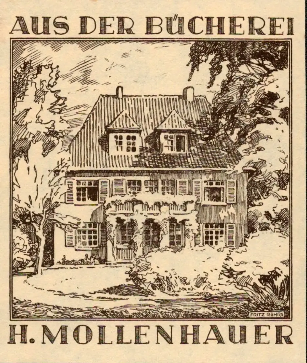 EXLIBRIS (Aus der Bücherei) H. Mollenhauer. Strichätzung nach einer Federzeichnung von F. Röhrs, Röhrs, Fritz (Ill.)