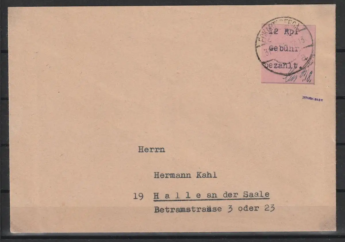 Eckartsberga Nr. 2 auf Sammlerbrief, gepr. Zirkenbach