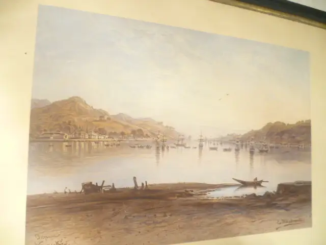 Eduard Hildebrandt Chromolithography Journey Around the Earth, Signed in Stone u. designated Port of Nagasaki