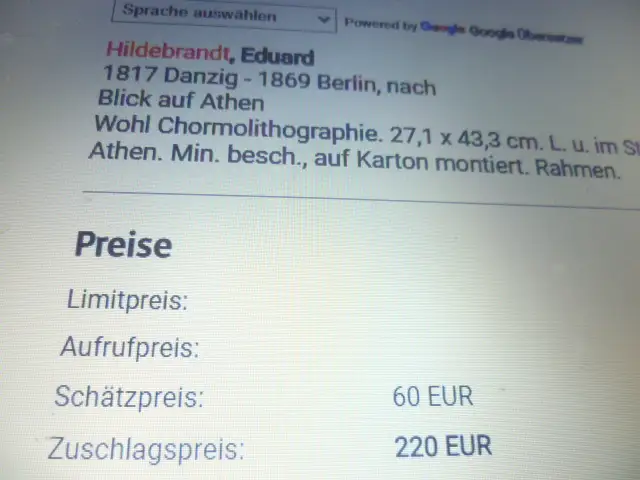 Es ist ein Auktion Schätzuwert in Höhe 400 nachweißbar