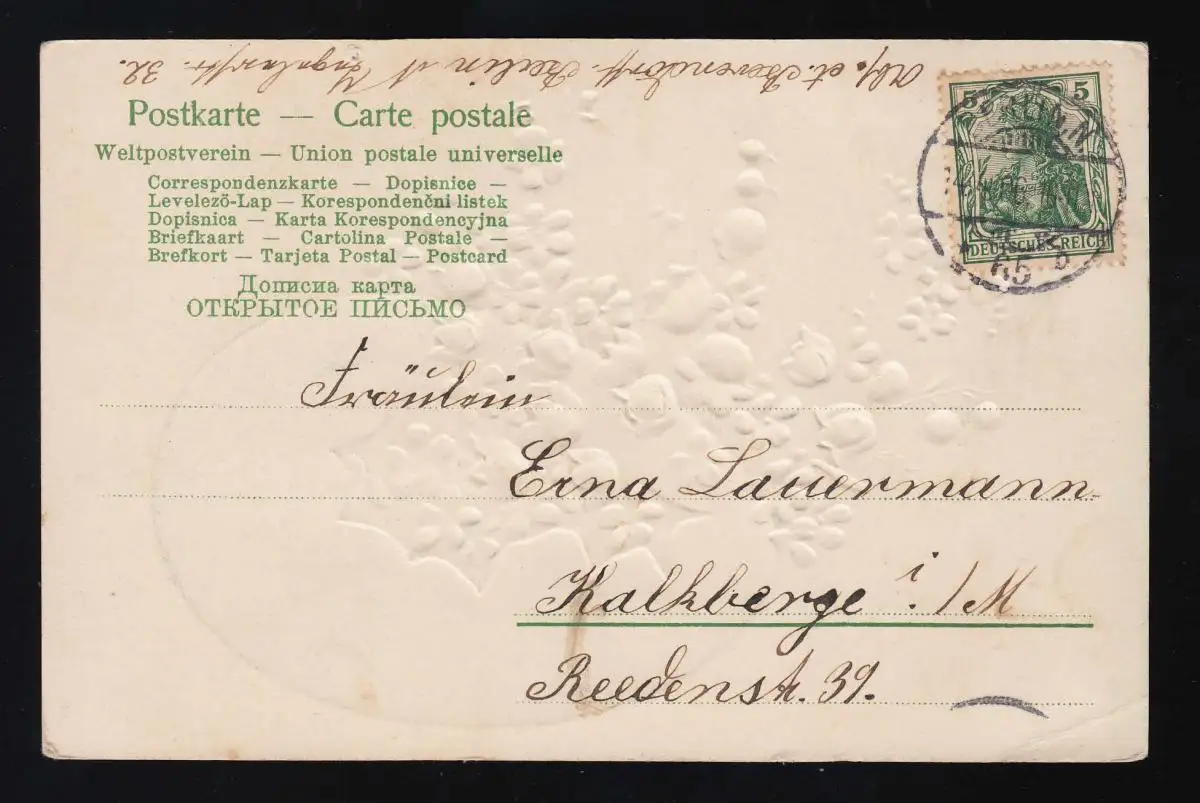 Eeuf avec un souvenir et Maigloekchen Fröhliche Pâques, Berlin 14.4.1906