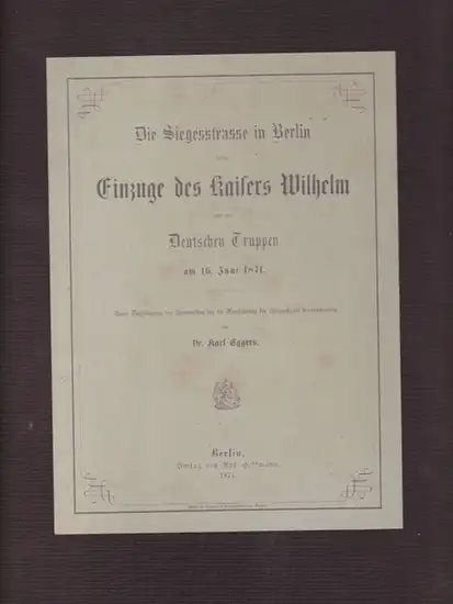 Eggers, Karl (Hrsg.): Die Siegesstrasse in Berlin beim Einzuge des Kaisers Wilhelm mit den Deutschen Truppen am 16. Juni 1871 (nur Textteil mit Plan).