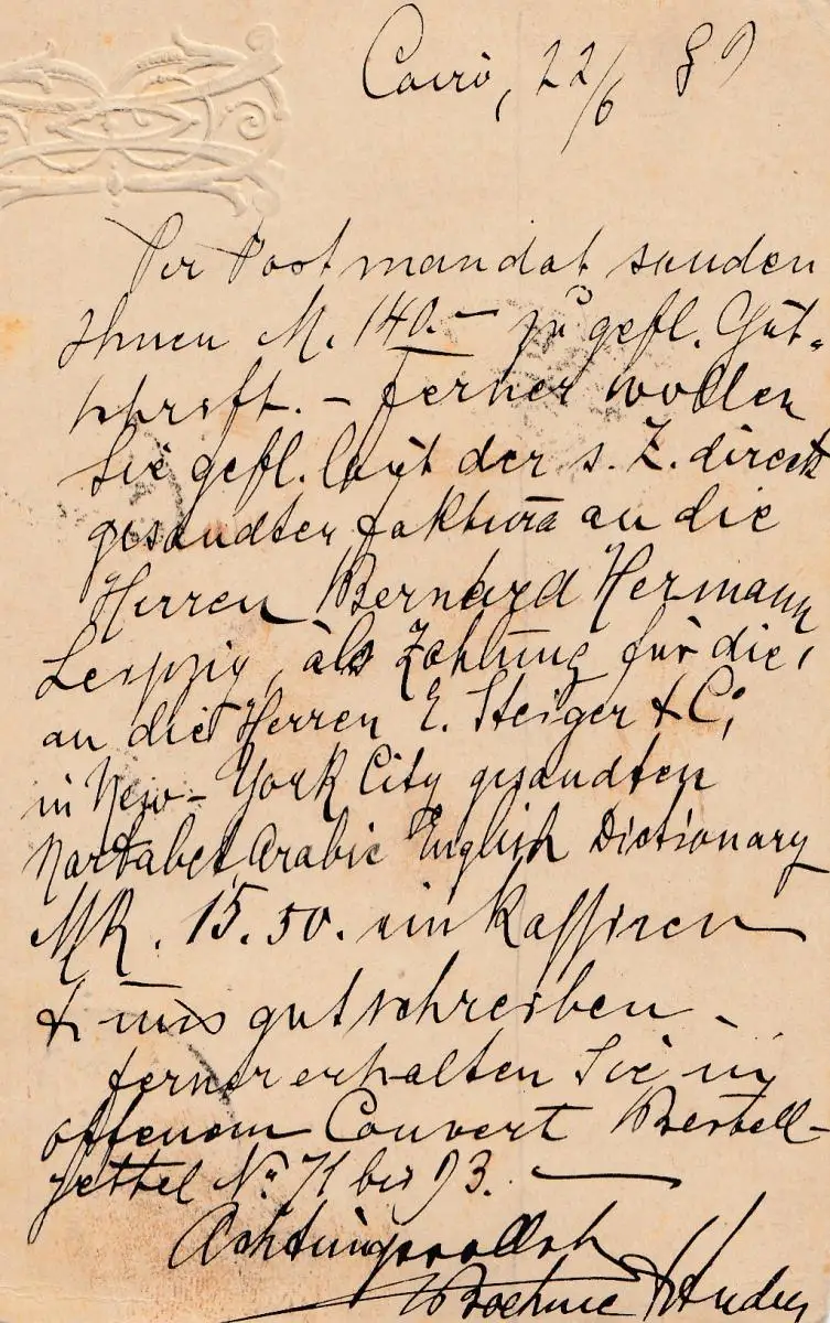 Égypte/Egypte: 1889: Cairo à Leipzig