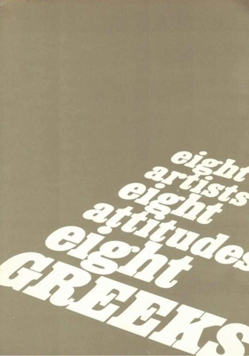 Titel: Eight Artists - Eight Attitudes - Eight Greeks. Stephan Antonakos - Vlassis Caniaris - Chryssa - Jannis Kounellis - Pavlos - Lucas Samaras - Takis - Costas Tsoclis. [Ausstellungskatalog:] 5 November - 4 December 1975