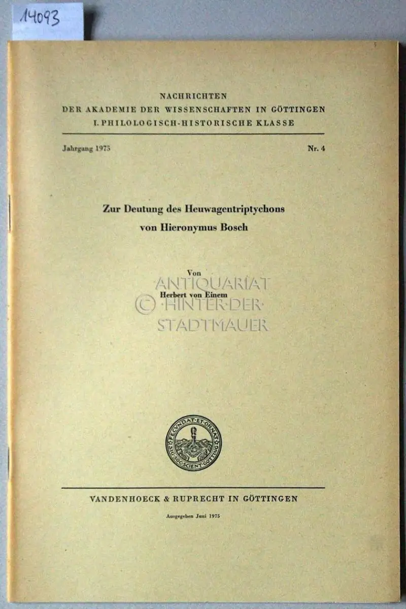 Einem, Herbert v: Zur Deutung des Heuwagentriptychons von Hieronymus Bosch. [= Nachrichten der Akademie der Wissenschaften zu Göttingen, Philologisch-Historische Klasse, Jg. 1975, Nr. 4].