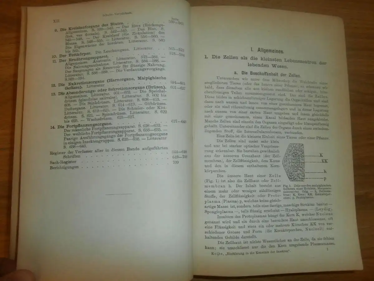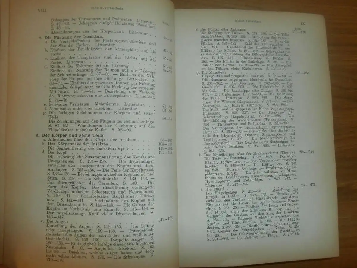 Inhaltsübersicht: I. Allgemeines. II. Die Körper der Insekten und seine Teile (Morphologie), sowie deren Lebensverrichtungen (Physiologie): Die Körperhaut und ihre Bekleidung - Die Färbung der Insekten - Der Körper und seine Teile - Die inneren Organe - Das innere Skelett - Die Muskulatur - Das Nervensystem - Die Atmungsorgane - Die Kreislauforgane - Der Fettkörper - Der Ernährungsapparat - Die Exkretionsorgane - Die Absonderungs- oder Sekretionsorgane (Drüsen) - Die Fortpflanzungsorgane. Sprache / Language: de 709 Seiten. ca. 21,3 x 14,5 cm.