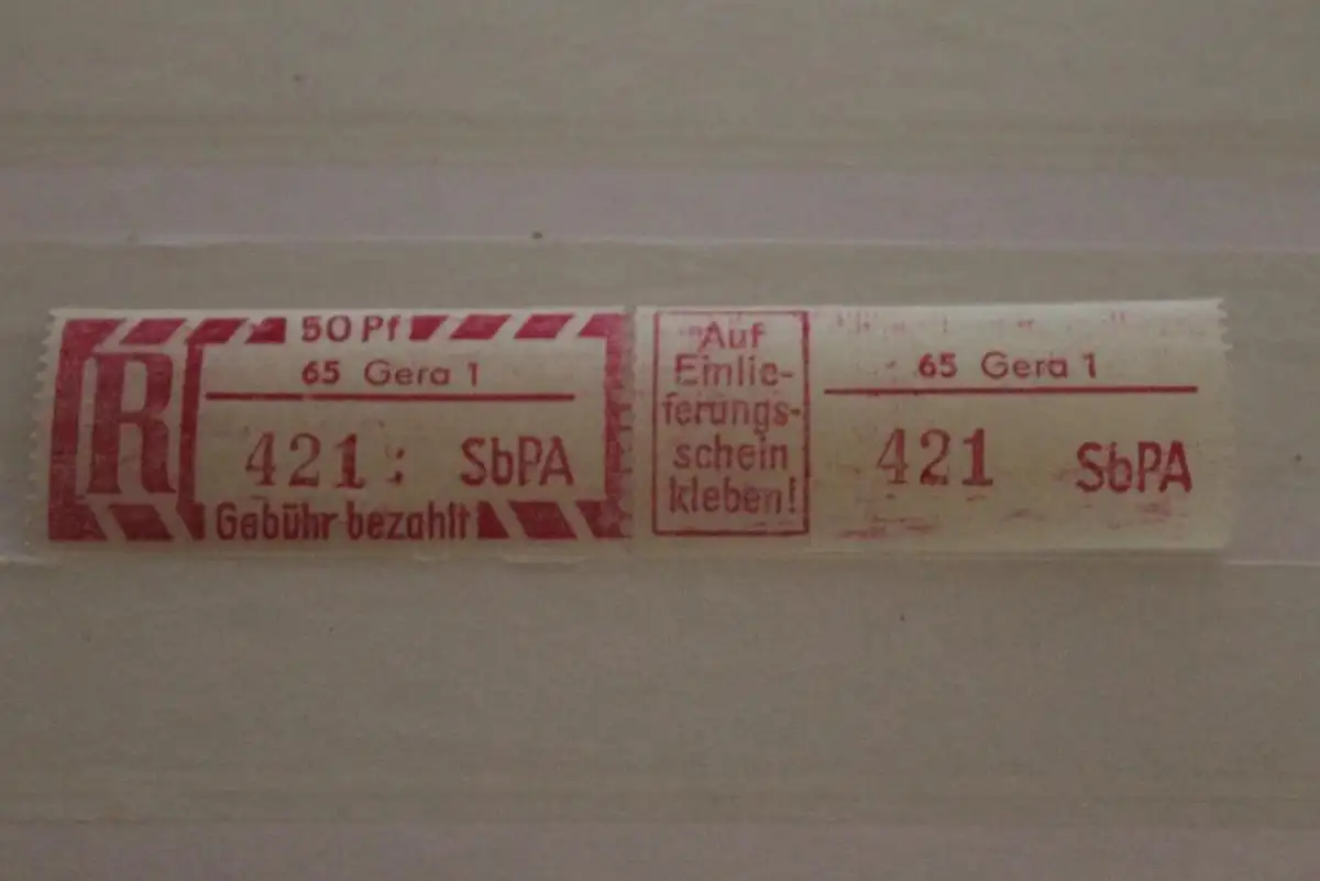 Einschreibe-Gebührenzettel, Einschreibemarken 1968; 2C; 65 Gera 1 ,**Z