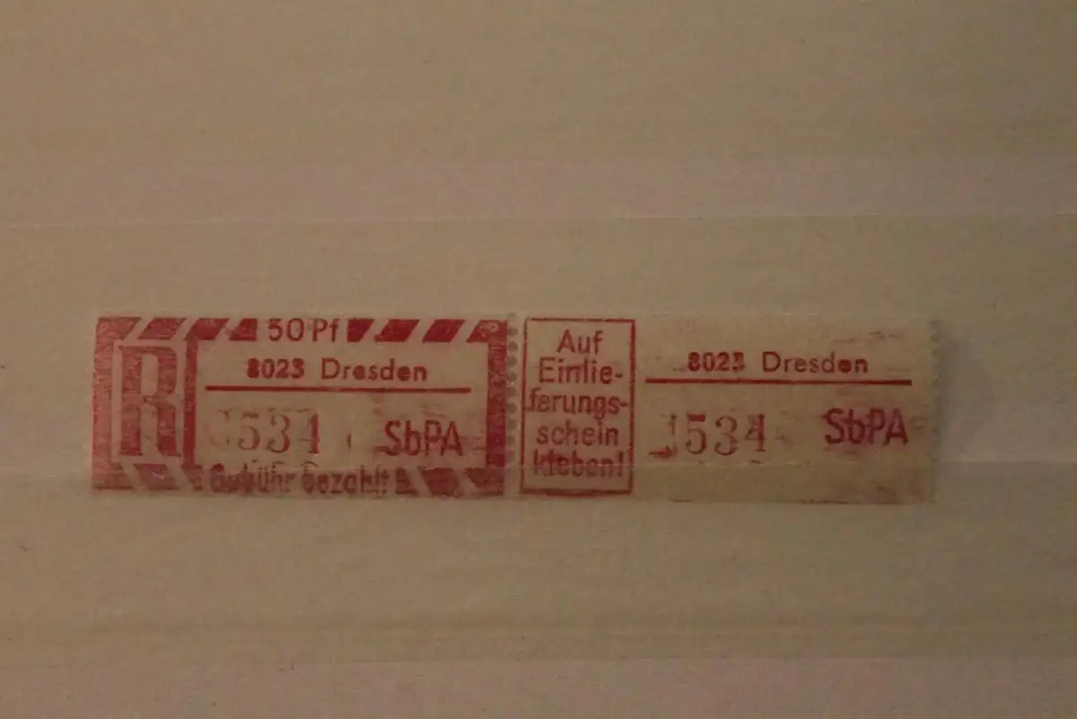 Einschreibe-Gebührenzettel, Einschreibemarken 1968; 2C; 8023 Dresden,**Z