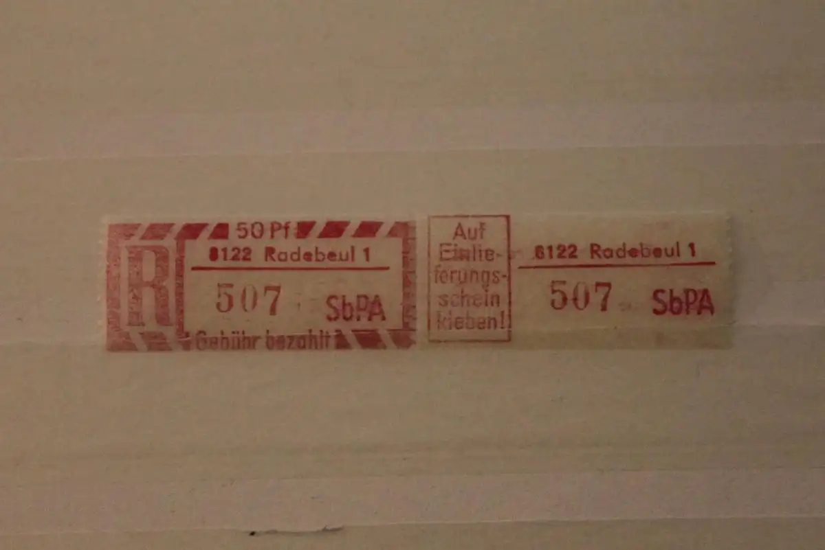 Einschreibe-Gebührenzettel, Einschreibemarken 1968; 2C; 8122 Radebeul 1,**Z