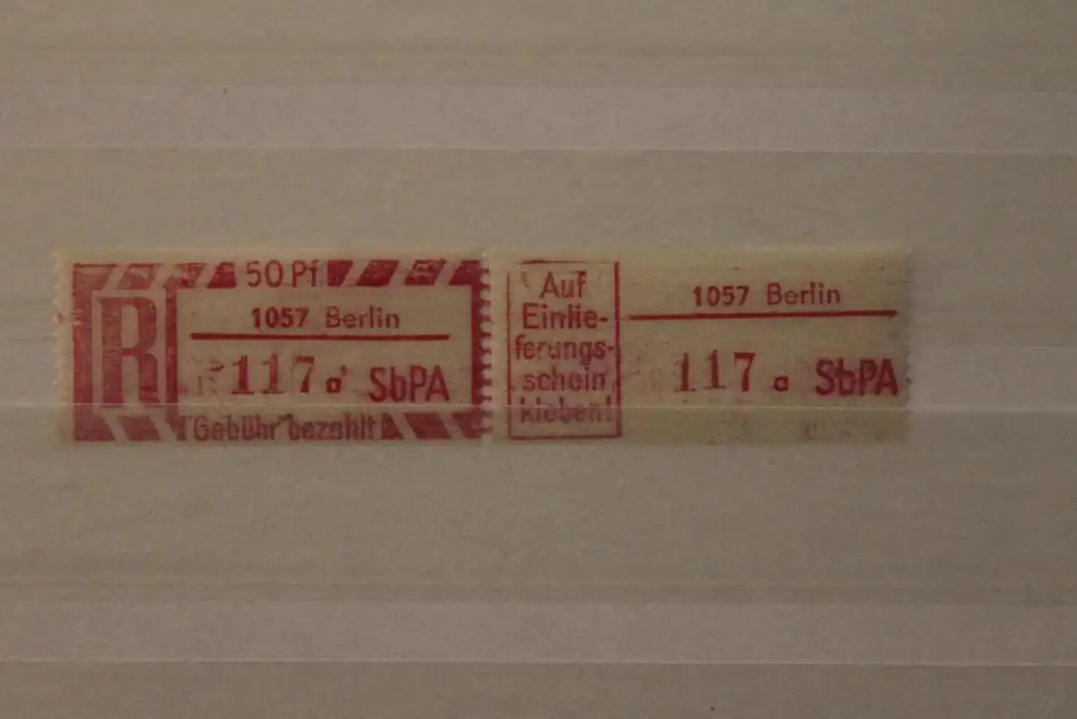 Einschreibe-Gebührenzettel, Einschreibemarken 1968; 2C; a, 1057 Berlin, **Z