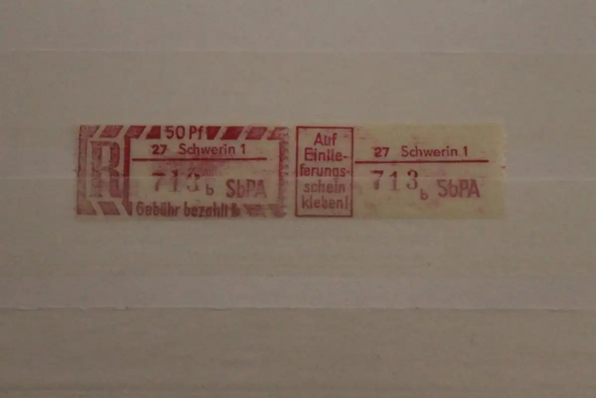 Einschreibe-Gebührenzettel, Einschreibemarken 1968; 2C; b, 27 Schwerin 1,**Z
