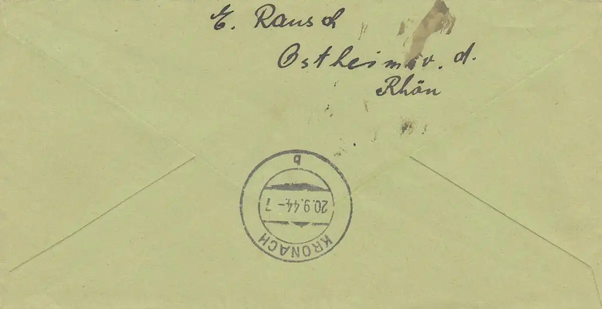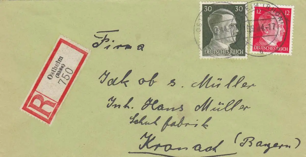 Lettre recommandé Ostheim/Rastatt après Kronach, 1944