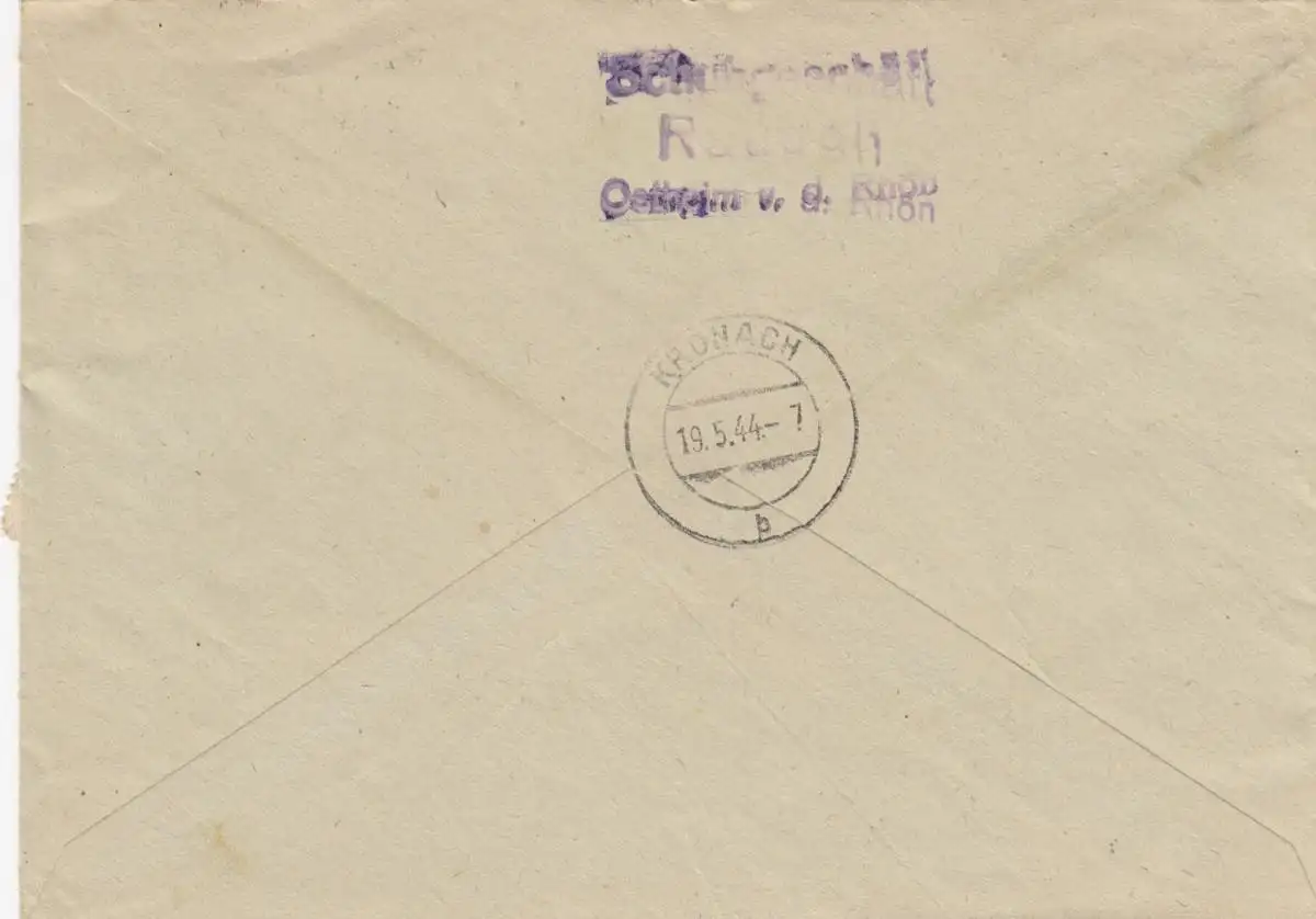 Lettre recommandé Ostheim/Rhön à l'usine de chaussures 1944 à Kronach