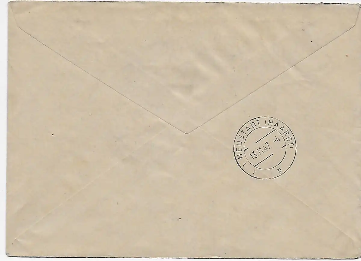 Lettre recommandé Sarrebruck 1947 à Neustadt/Haardt