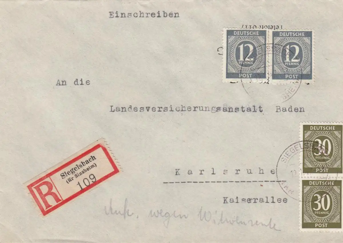 Siegelsbach/Sennsheim 1947 vers Karlsruhe