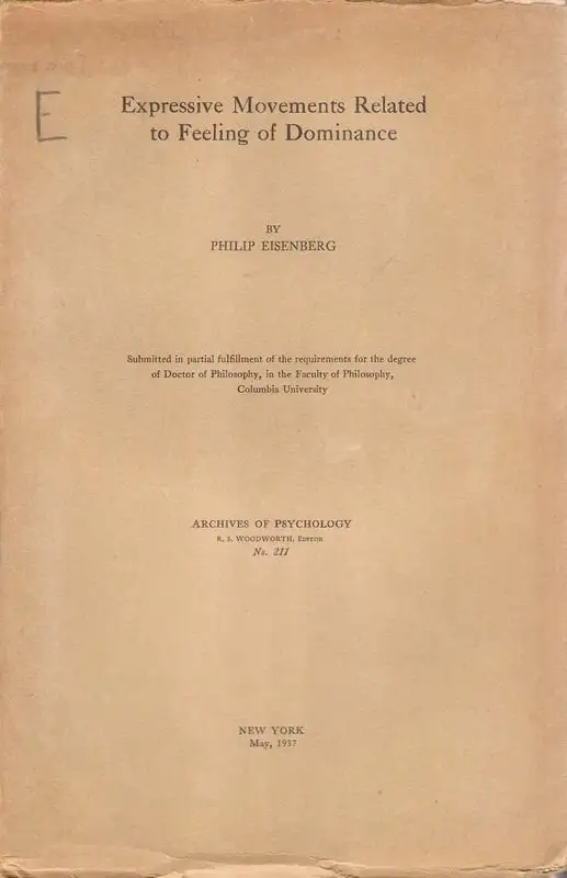 Eisenberg, Philip: Expressive movements related to feeling of dominance. (Diss.). (Archives of psychology. - New York, NY : Columbia Univ, 1906-1945 ; 211).