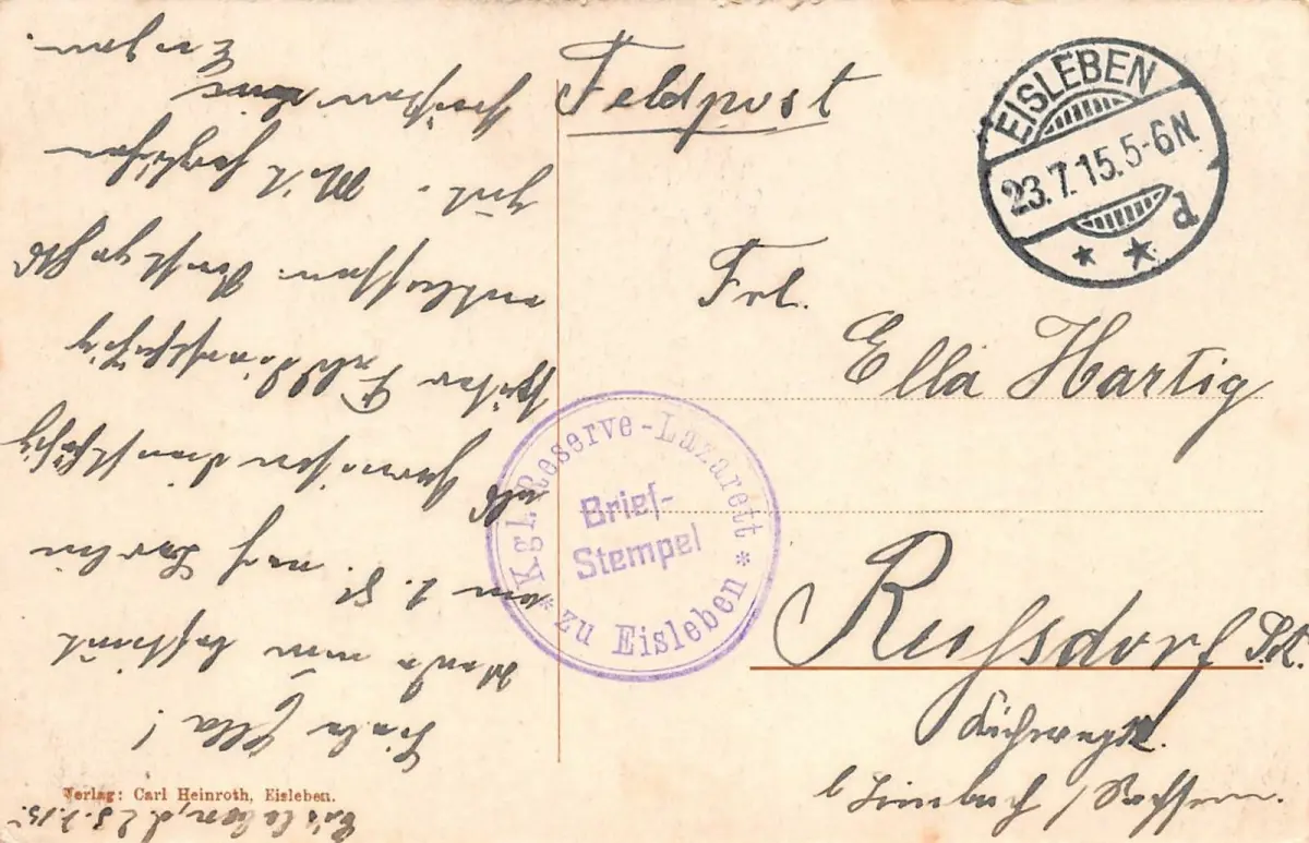 Eisleben Totalansicht Kgl. Reserve-Lazarett Feldpostkarte 1915