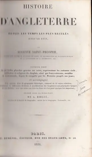 England / Großbritannien. - Saint-Prosper, Auguste: Histoire d'Angleterre depuis les temps les plus recules jusq'en 1838.