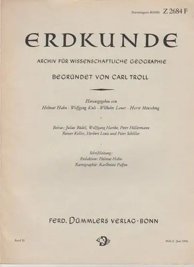 Erdkunde. - Carl Troll (Begr.) / Helmut Hahn (Red.): Erdkunde. Archiv für wissenschaftliche Geographie. Band 30, Heft 2, Juni 1976.