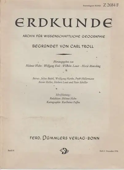 Erdkunde. - Carl Troll (Begr.) / Helmut Hahn (Red.): Erdkunde. Archiv für wissenschaftliche Geographie. Band 30, Heft 4, Dezember 1976.