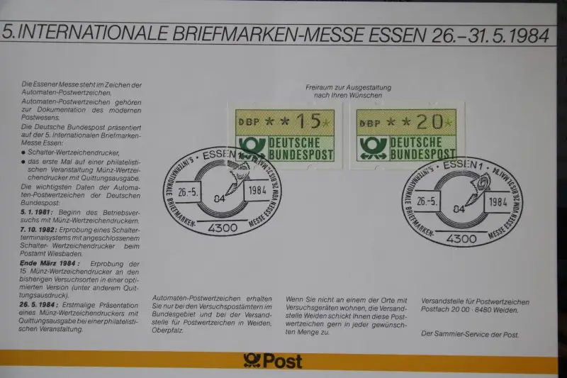 Erinnerungsblatt der Deutsche Post ; Messe Essen 1984