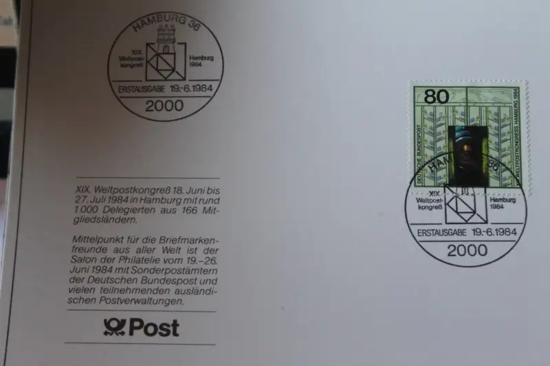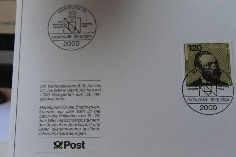 Erinnerungsblatt der Deutsche Post ; Weltpostkongress Hamburg /H. von Stephan; Set von 3 Blättern