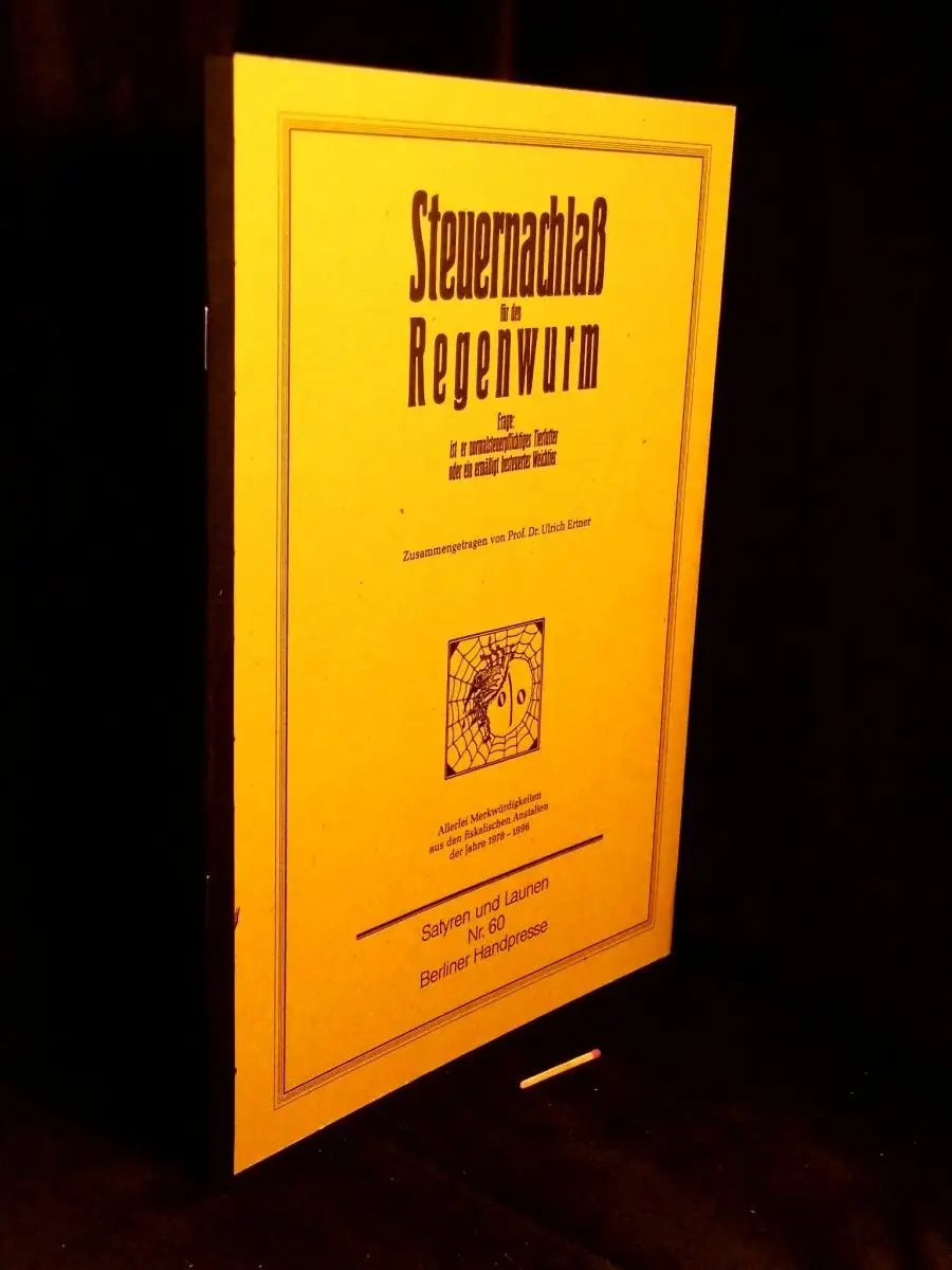 Ertner, Ulrich (Zusammenstellung): Steuernachlaß für den Regenwurm - Frage: ist er normalsteuerpflichtiges Tierfutter oder ein ermäßigt besteuertes Weichtier. Allerlei Merkwürdigkeiten aus den fiskalischen Anstalten der Jahre 1978-1996 - aus der Reihe: Sa